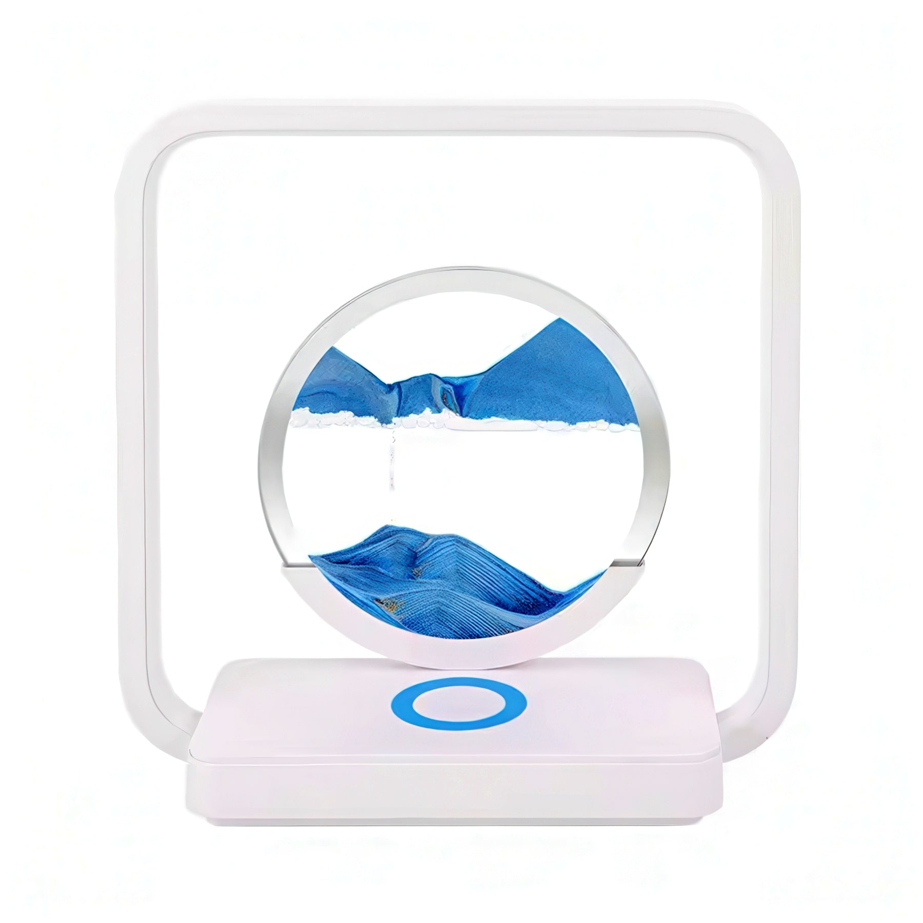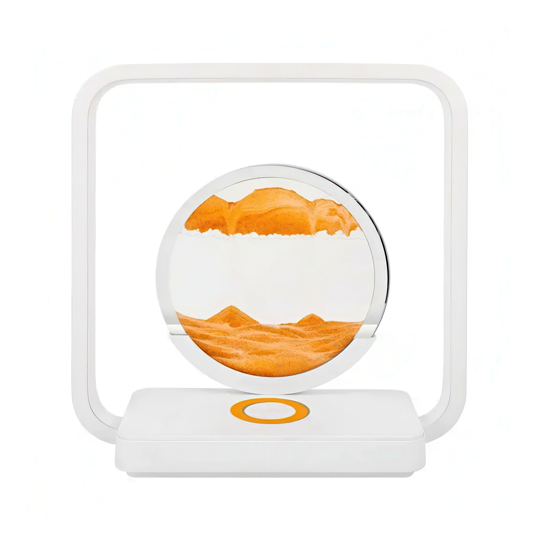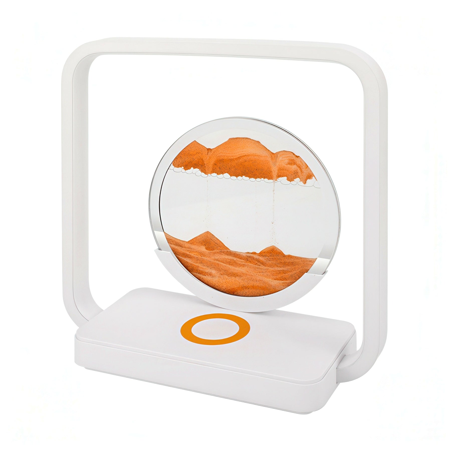 Mesmerizing 3D sand art meets modern convenience. Watch golden sand flow and shift in hypnotic patterns while your phone charges wirelessly beneath the glass base. Soft ambient nightlight creates a calming glow—perfect for desks, nightstands, or shelves. A functional art piece that transforms everyday charging into a moment of zen.