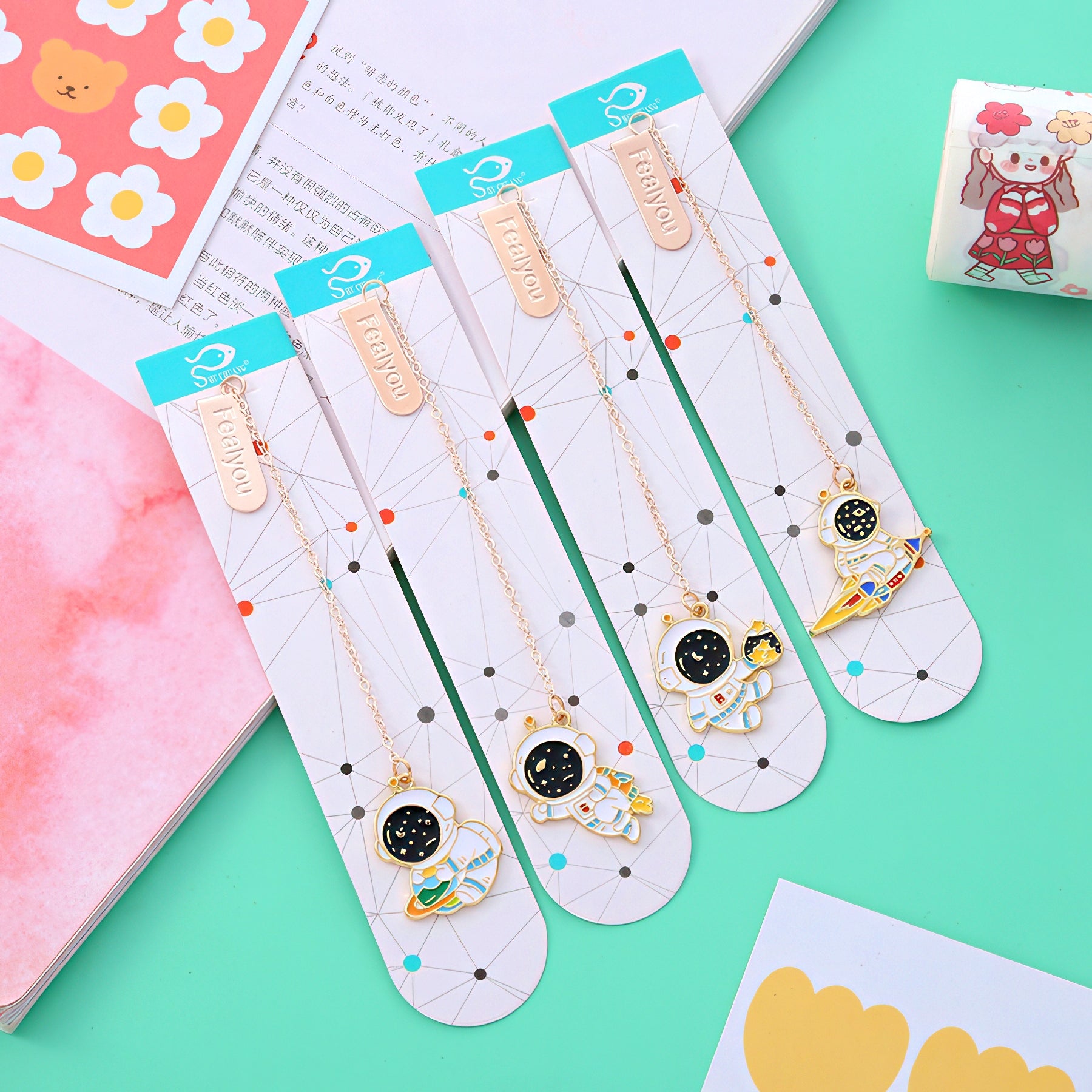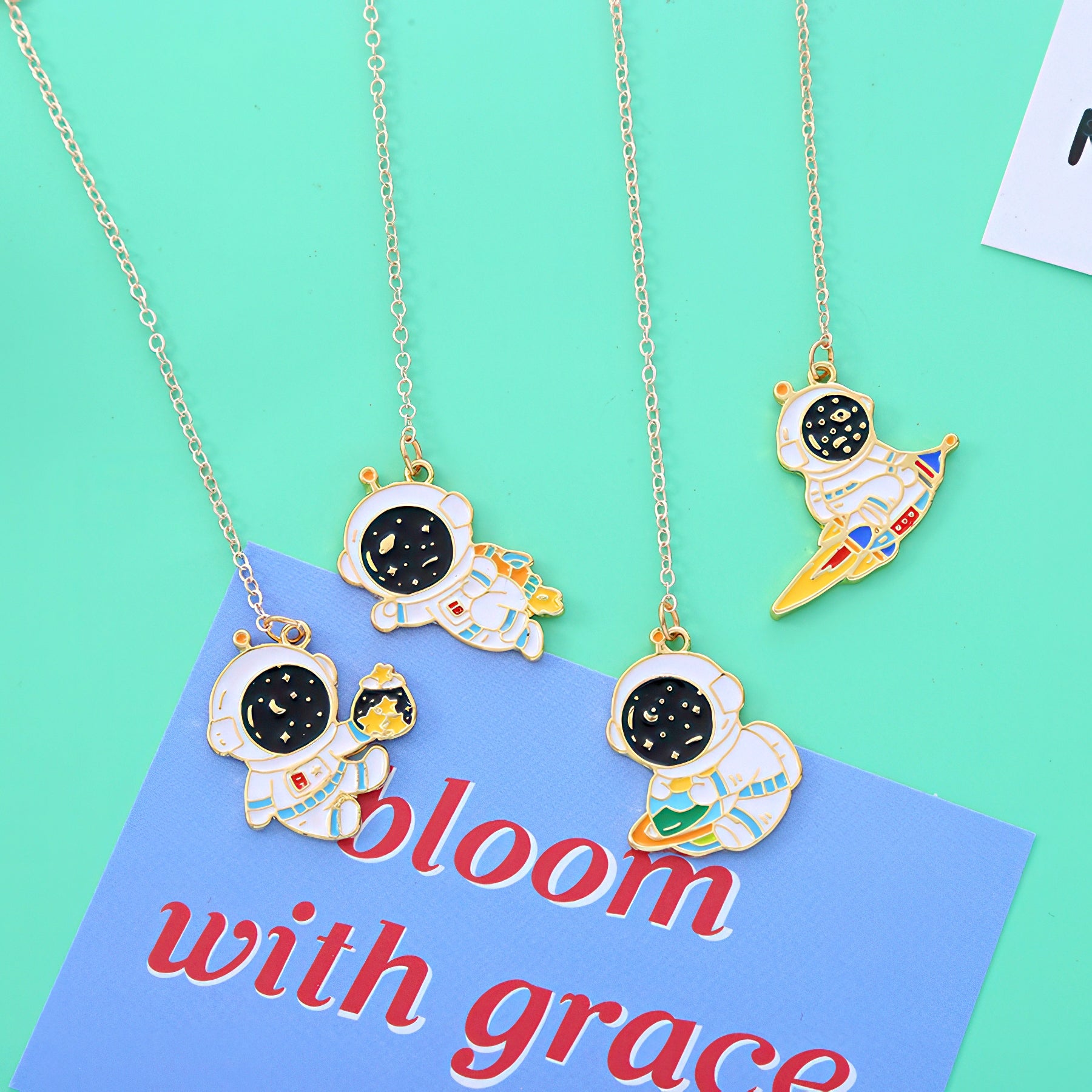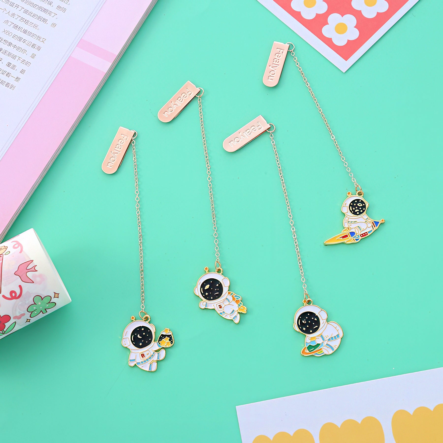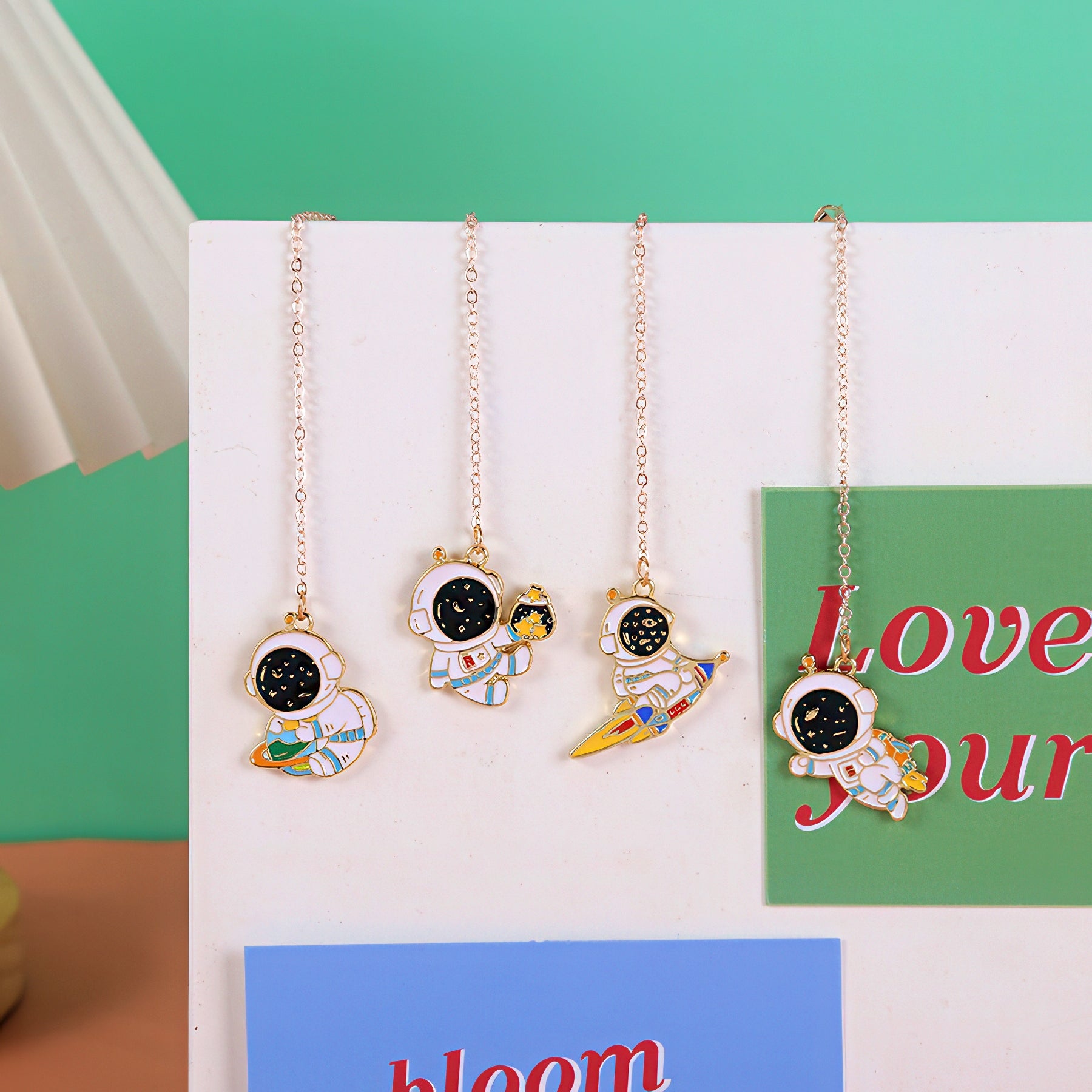 Astronaut Themed Metal Charm Bookmark