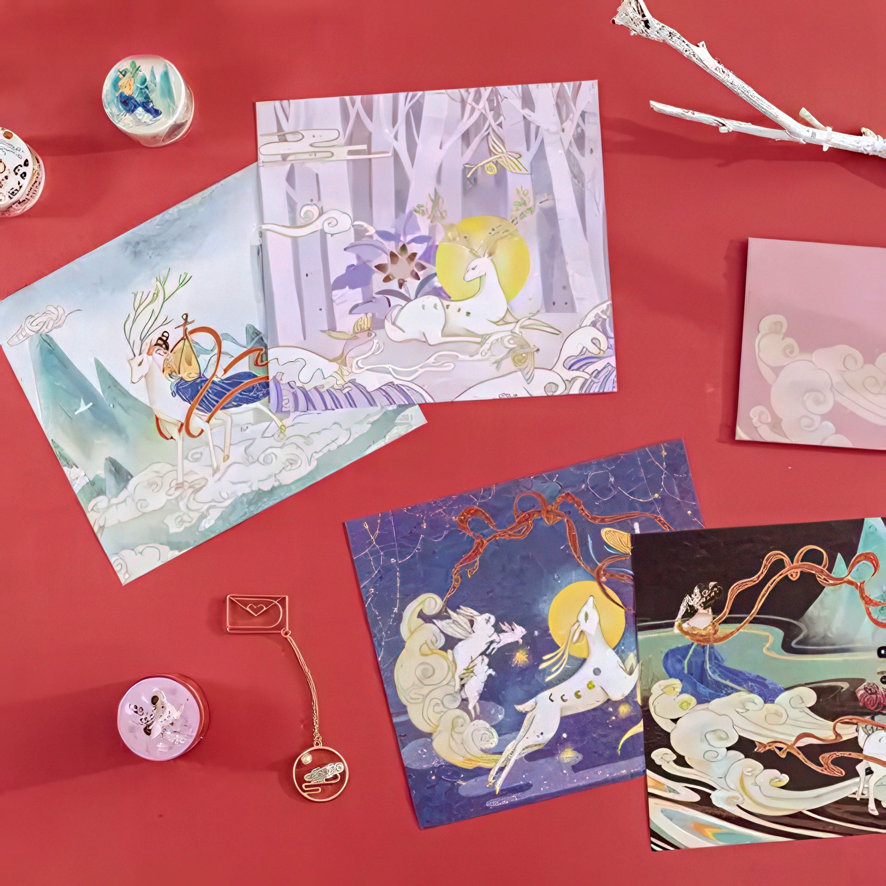 - Included: 4 material papers, 3 washi tapes, 1 envelope, 1 metal bookmark