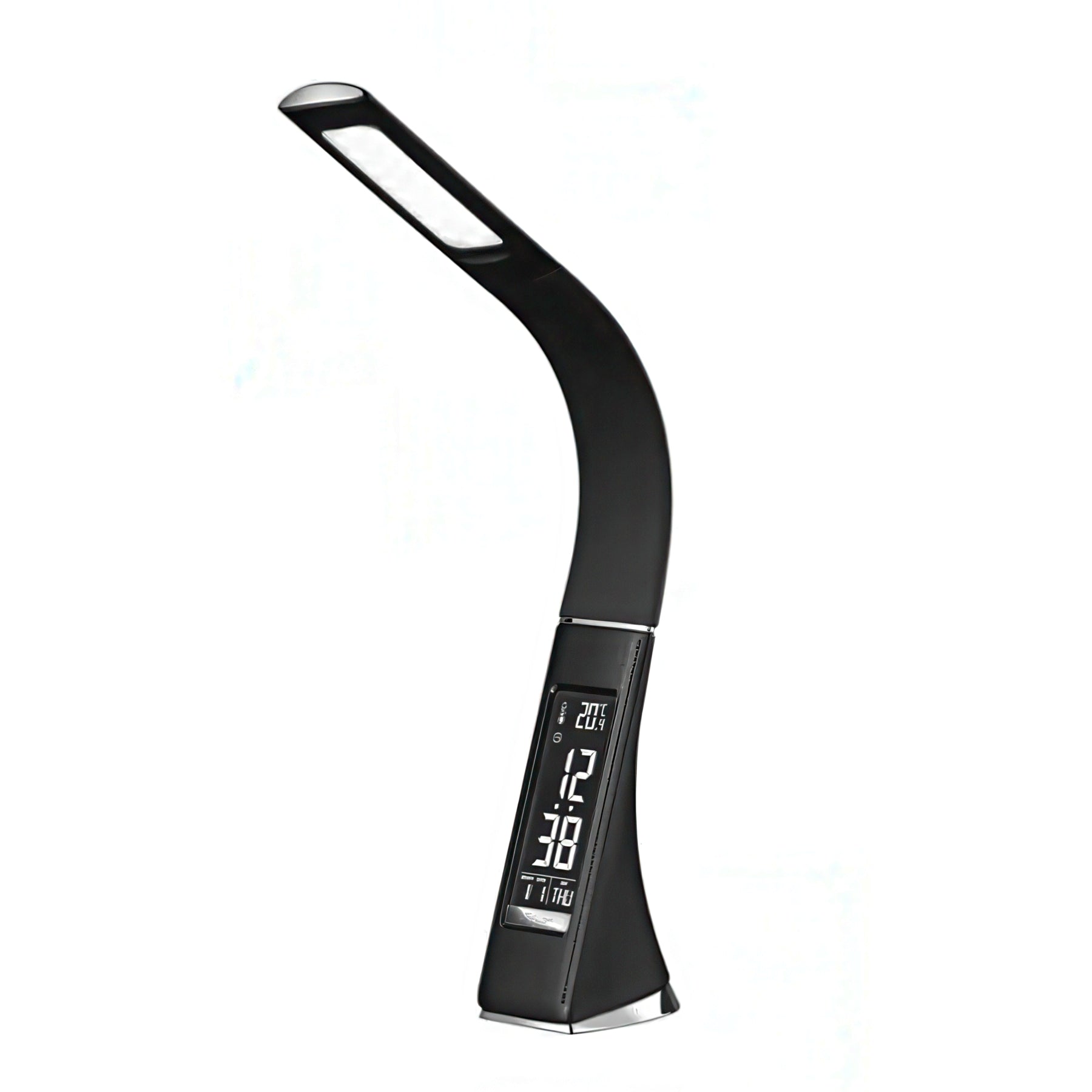 Brighten your workspace with this all-in-one Eye Protection Desk Lampâa joyful blend of function and style! Featuring flicker-free lighting that cares for your eyes during long study or work sessions, this lamp delivers comfortable, strain-free illumination. Stay organized with the built-in digital clock, calendar, and temperature display right at your fingertips. The flexible silicone goose neck arm bends and adjusts to your perfect angle, while a backup battery keeps your settings safe during power outages. Ideal for students, professionals, and anyone seeking a desk companion that works as hard as they do.