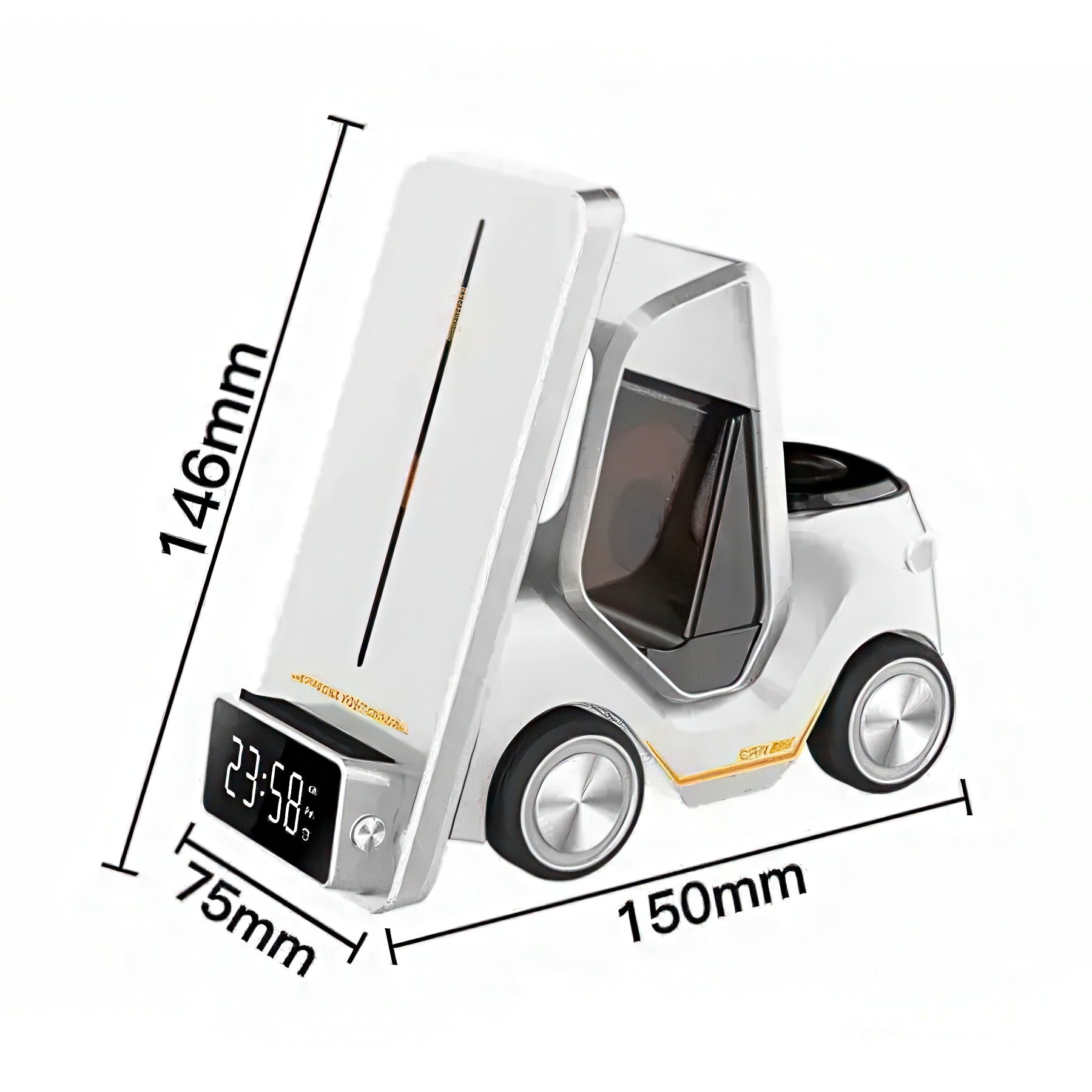 Charge up your devices with a smile! This playful forklift-shaped wireless charging station keeps your smartphone, smartwatch, and wireless earbuds powered and ready to go. The built-in alarm clock keeps you on schedule while your gadgets juice up overnight. Perfect for desk lovers, tech enthusiasts, and anyone who appreciates a touch of whimsy in their workspace. Compact, functional, and fun—your charging station just got a personality upgrade.