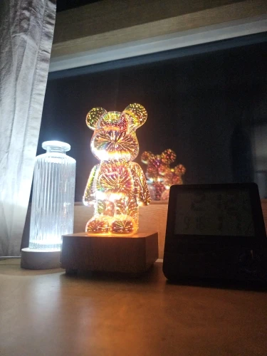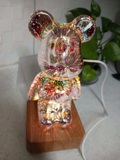 LED Bearbrick Nightlight with 3D Fireworks Effect