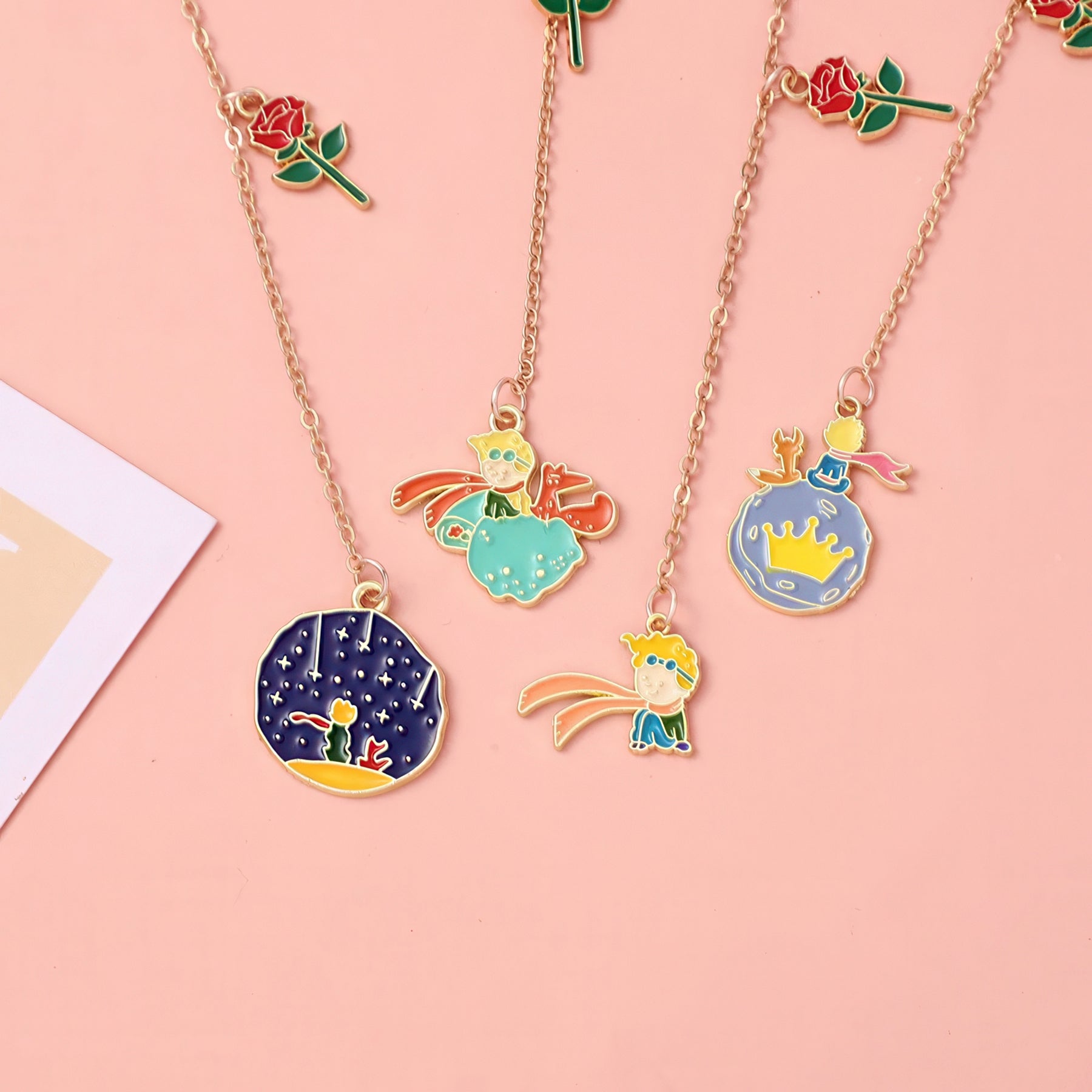 Whisk yourself away to a magical world with these enchanting Little Prince themed metal charm bookmarks. Each bookmark features delicate metal charms inspired by the beloved classic tale—perfect for marking your place in adventure-filled pages. The charming designs capture the wonder of distant planets and timeless friendship, making it the perfect companion for dreamers and book lovers alike.