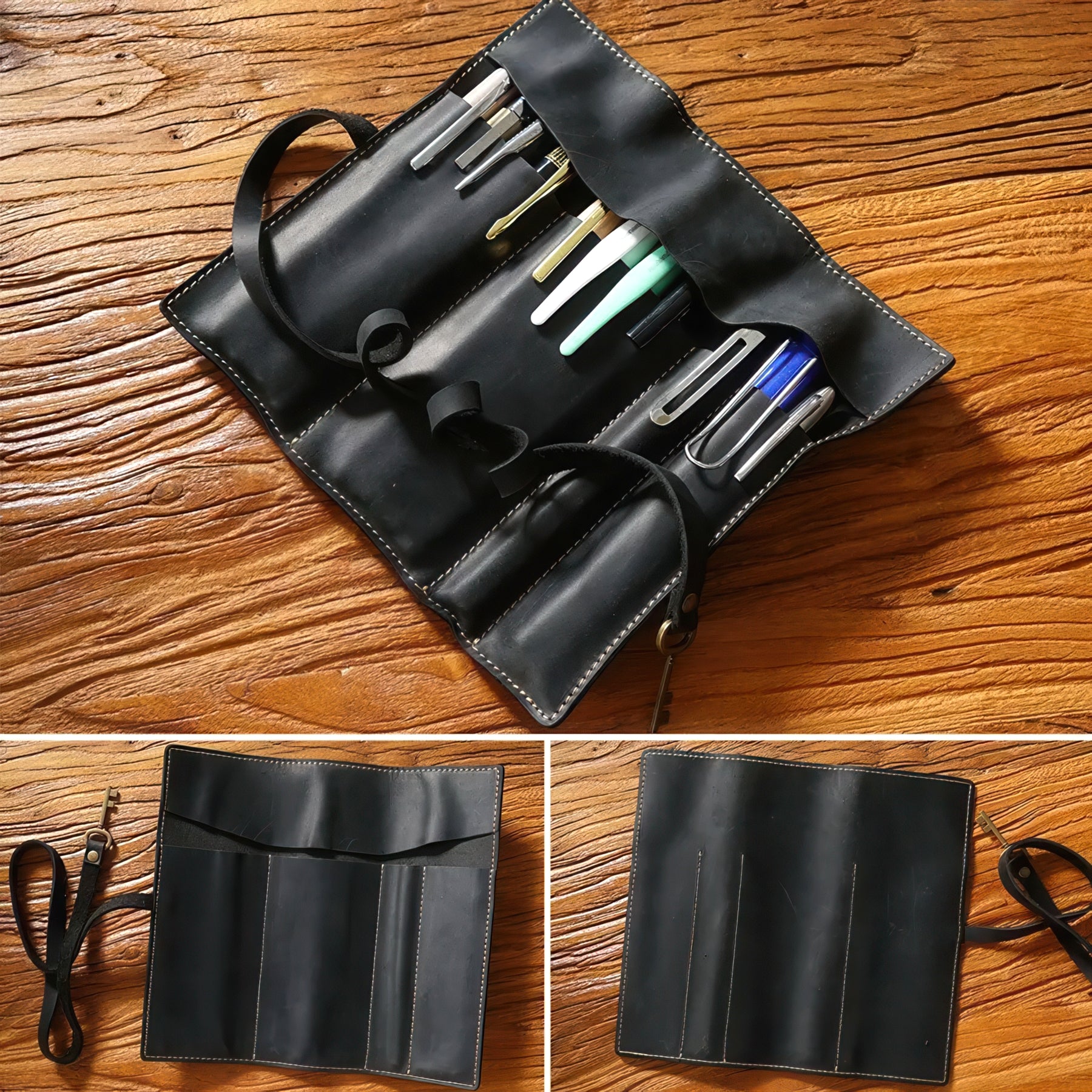 Roll up your creative spirit with this charming cowhide pencil case! Crafted from genuine dyed cowhide, it features a rustic aesthetic that's perfect for artists, students, and anyone who loves a touch of natural style. The roll-up design keeps your pencils, markers, and brushes neatly organized and easy to access wherever inspiration strikes. A practical accessory that celebrates both function and artisanal flair.