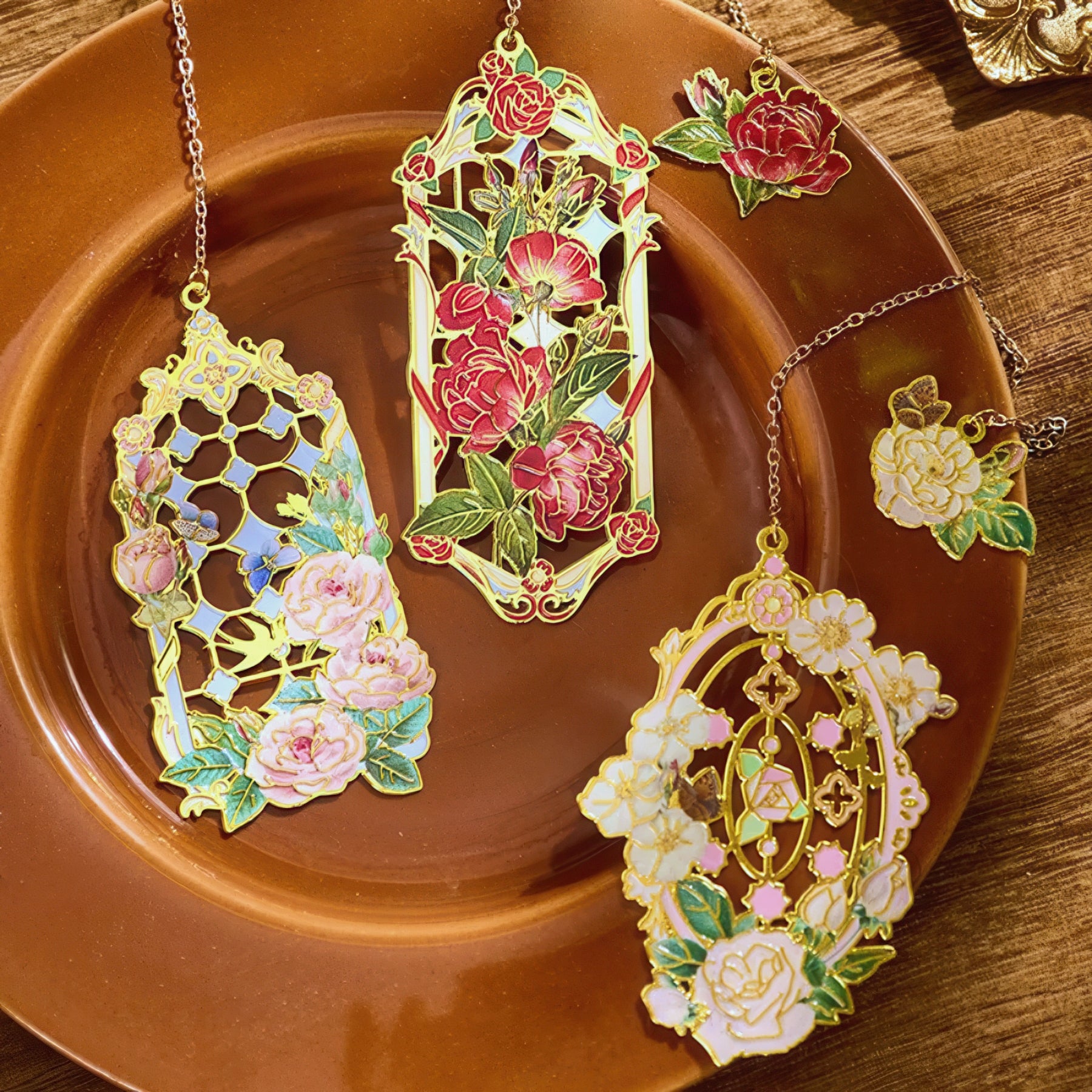 Baroque Roses Design Metal Bookmark