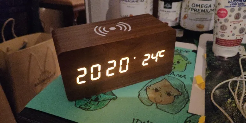 Wooden Alarm Clock with Wireless Charging